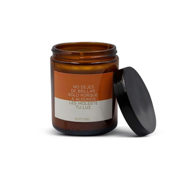 - Vela aromática de soya en frasco de vidrio con etiqueta personalizada.