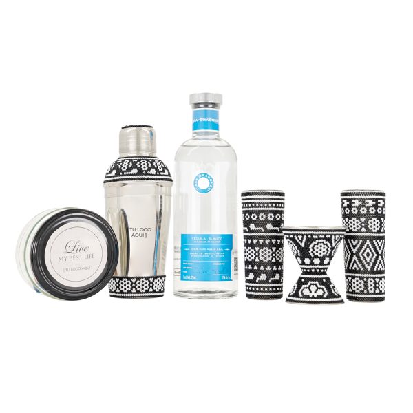 • Jigger intervenido por artesanos huicholes. Cada pieza es única, se puede hacer con los colores de la marca.