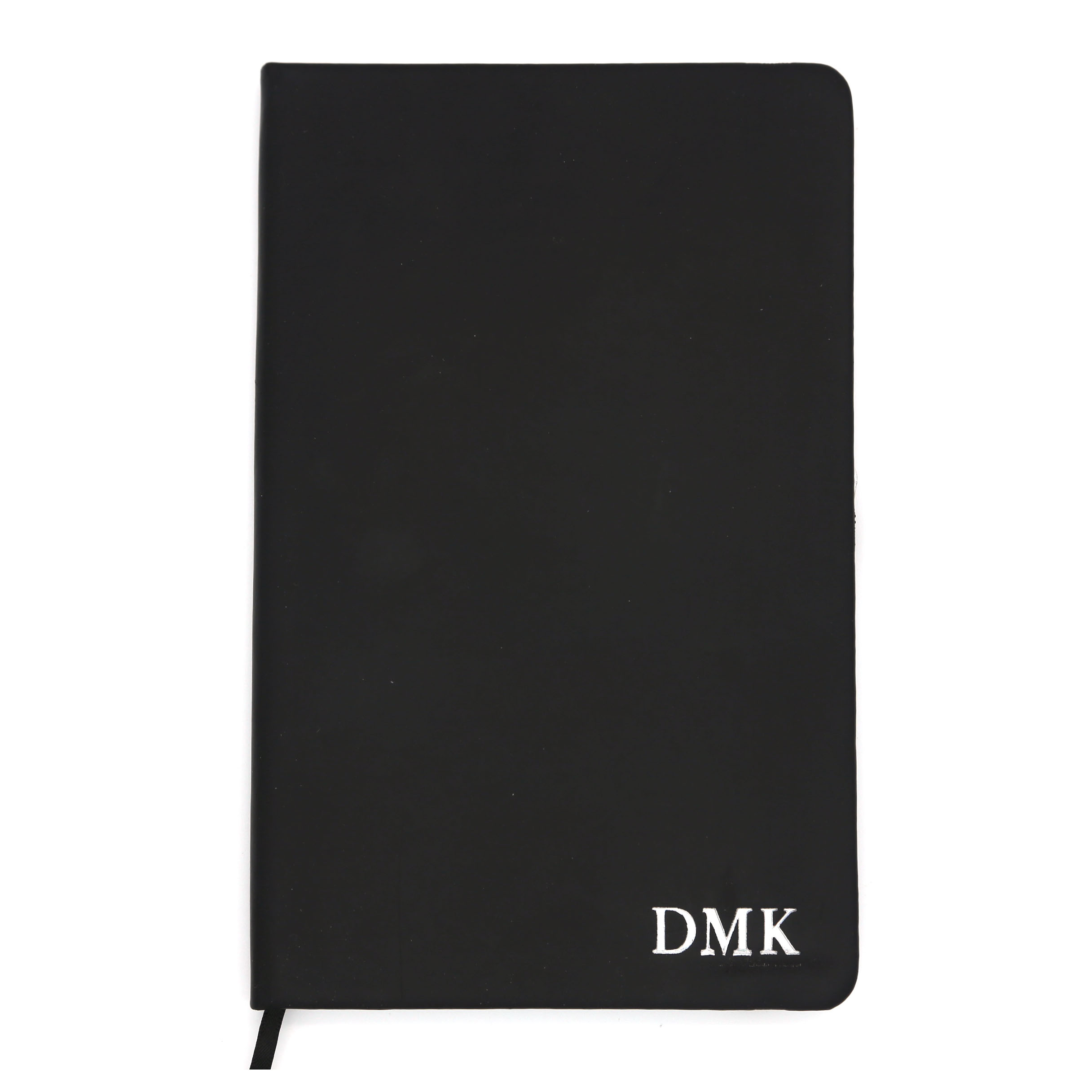 Caja de cartón negro rígido con tapa integrada que cierra con listón y tarjeta personalizada.