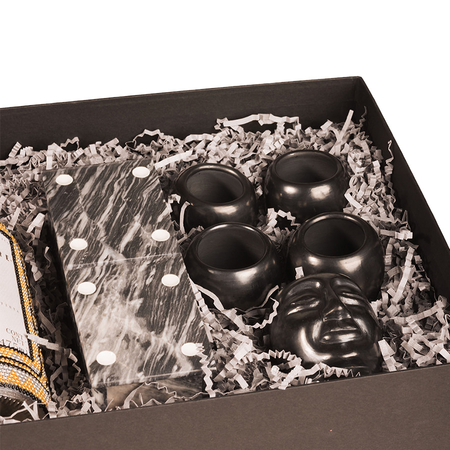 - Shots de barro negro hechos a mano por artesanos mexicanos.
