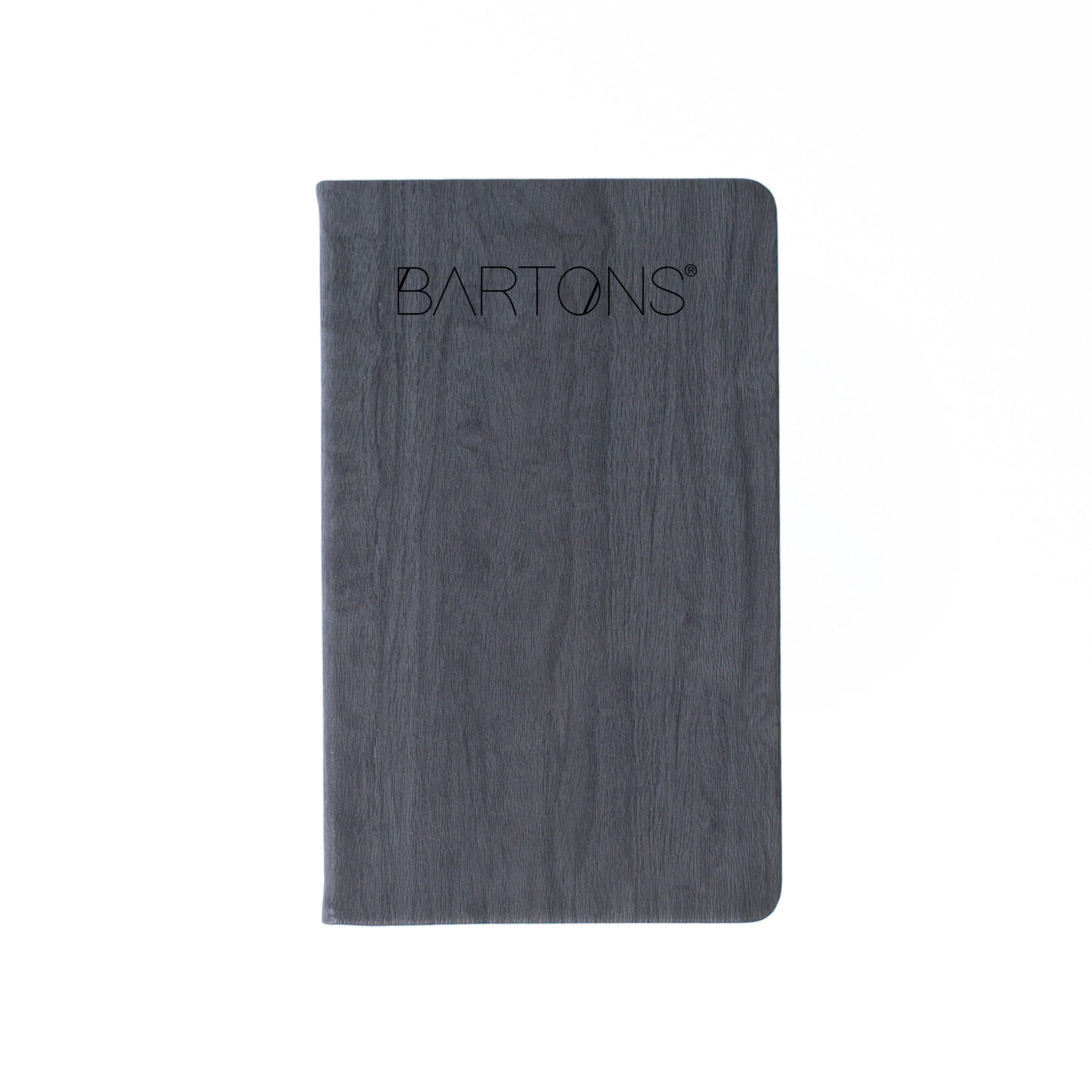 • Libreta con acabado tipo madera con banda elástica y listón separador de hojas.