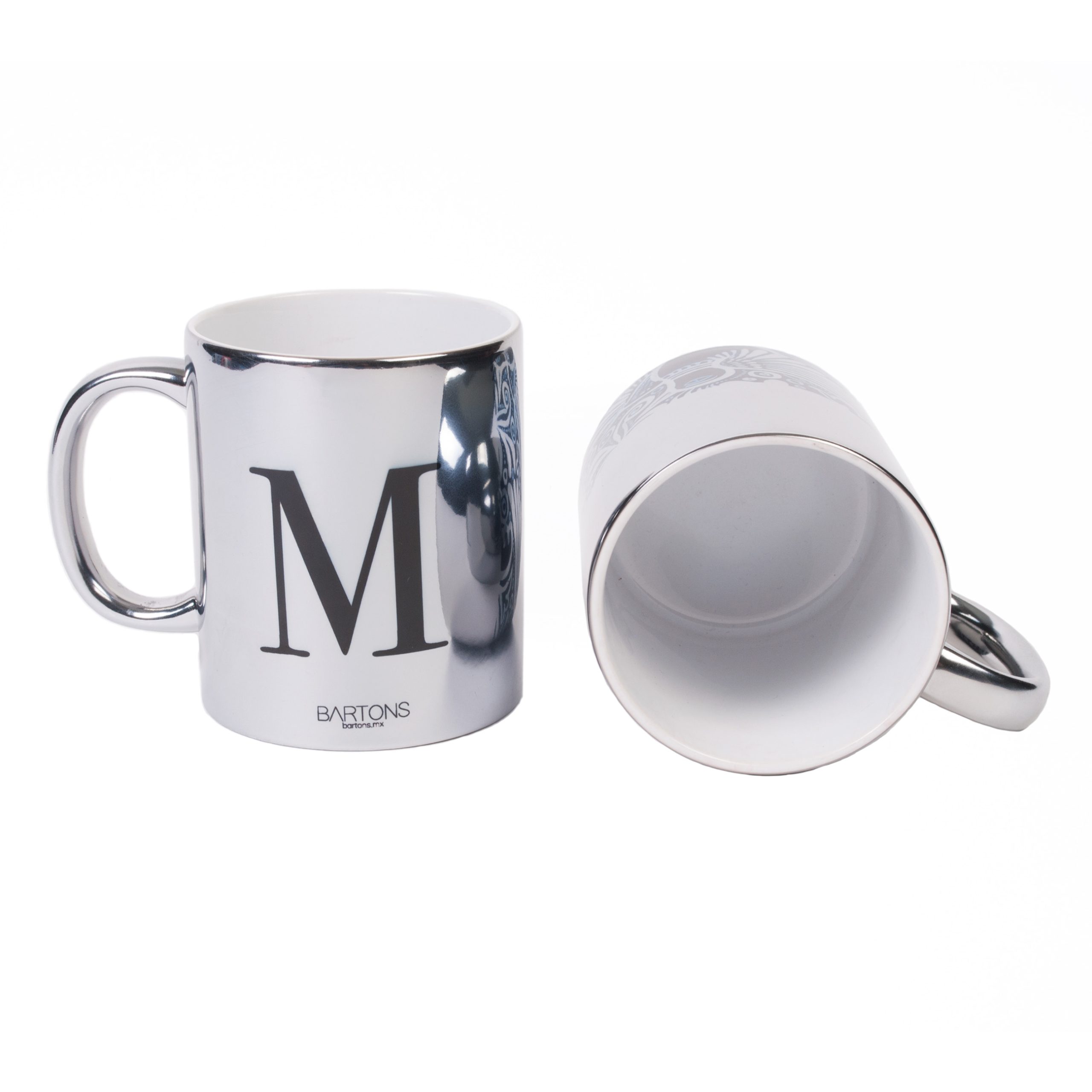 • Taza de cerámica con terminado metálico con interior blanco.